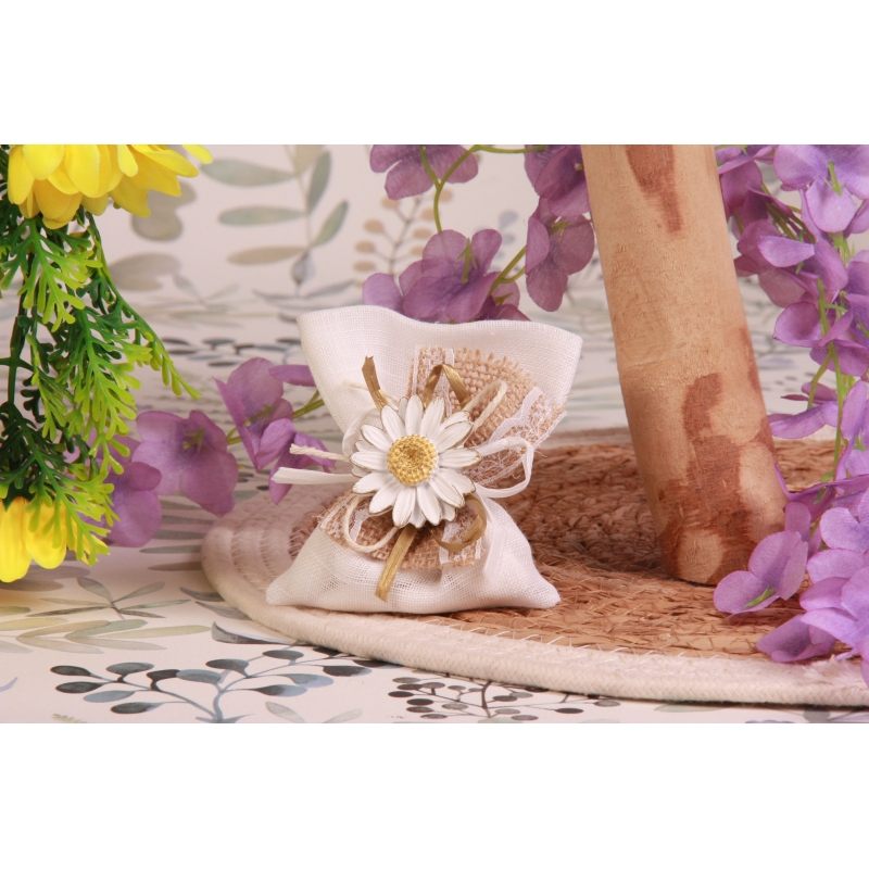 Marguerite sur pochon écru