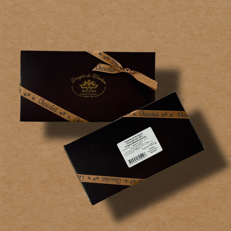 Crafted 100% at the Braquier factory, our bar offers unbeatable quality. Its flavor is both aromatic and fruity, perfectly balanced with sugar and cocoa butter.