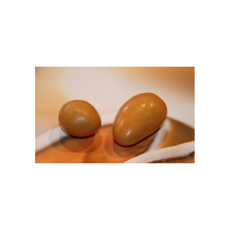 L'alliance entre l'amande et la noisette grillées, le caramel et le chocolat au lait donne un croquant exceptionnel à ces dragées.