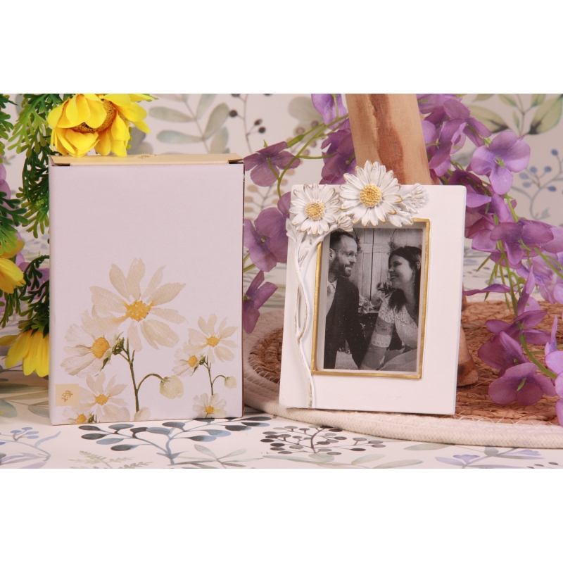 Un cadre photo en résine fleur Marguerite en relief (10*H13,5cm).